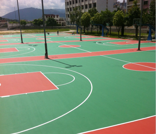 3、因聚氨酯地坪漆具有耐磨耗性、耐水性、接著性的特點,適用于網球場、標準跑道等。